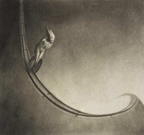 قبل از اینکه حکاکی ها را کنار بگذارم سوگند یاد کردم که زندگی من را وقف خلق آثار مشابه خواهد کرد. " تکنیک aquatint که توسط کلینگر و گویا به کار رفته است ، بر سبک آثار او در این دوره تأثیر می گذارد ، که عمدتا نقاشی های جوهر و شستشو از موضوعات خارق العاده ، غالباً makabre هستند. کوبین در سالهای بین 1902 تا 1910 تعداد کمی نقاشی روغنی تولید کرد ، اما پس از آن بازده وی شامل نقاشی های قلم و جوهر ، آبرنگ ها و سنگ نگاری ها بود.