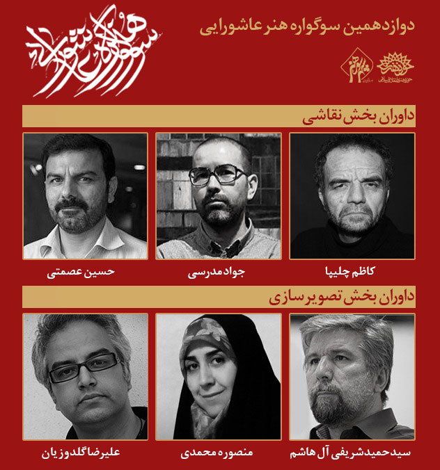 به گزارش روابط عمومی مرکز تجسمی حوزه هنری،‌کاظم چلیپا، حسین عصمتی و جواد مدرسی آثار نقاشی دوازدهمین سوگواره هنر عاشورایی را داوری می‌کنند.